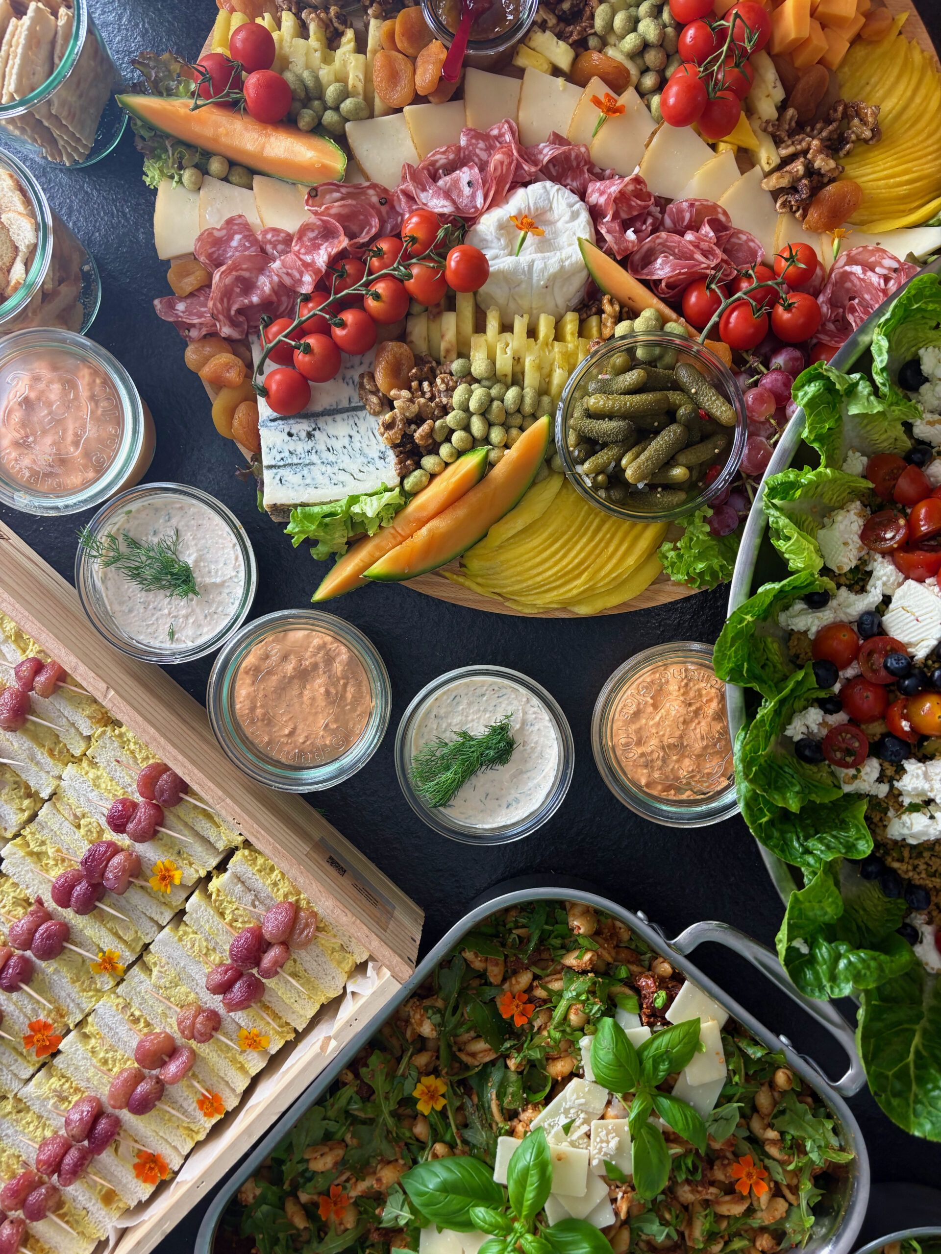 Unser Buffet GRACE ist mein persönlicher Favorit, es benötigt weitestgehend keine Chafing Dishes, bietet eine große Vielfalt, ist unkompliziert und u.a. durch unser Aushängeschild, die Grazing Boards, einfach eine Augenweide.
